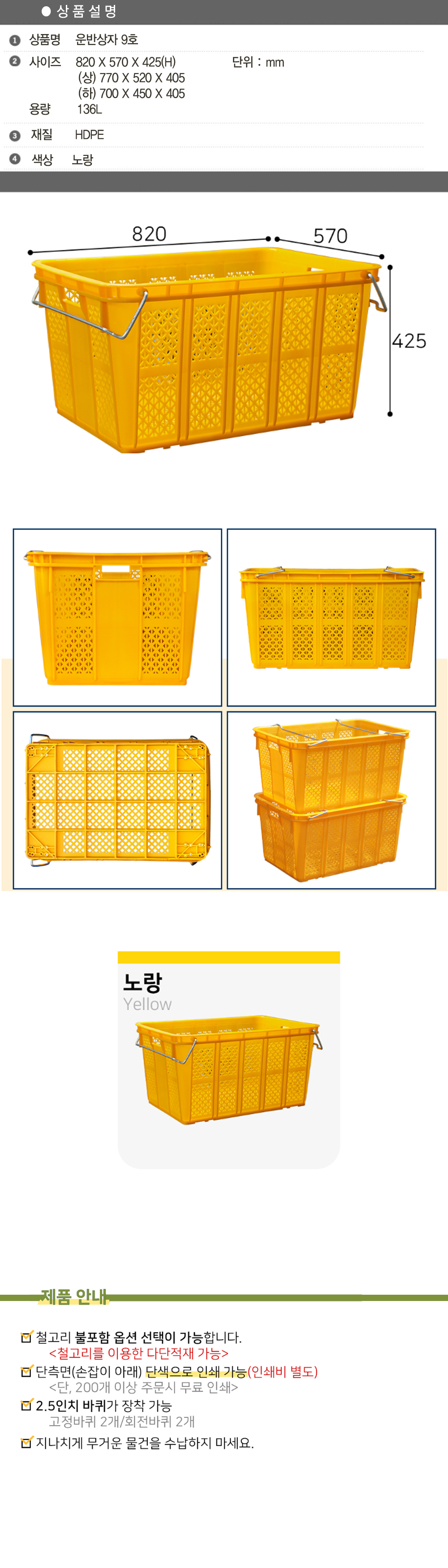 운반상자 9호AC 820mm X 570mm X 425mm(H) 플라스틱 보관함 수납상자 적재 농수산물 이사 바구니 상자