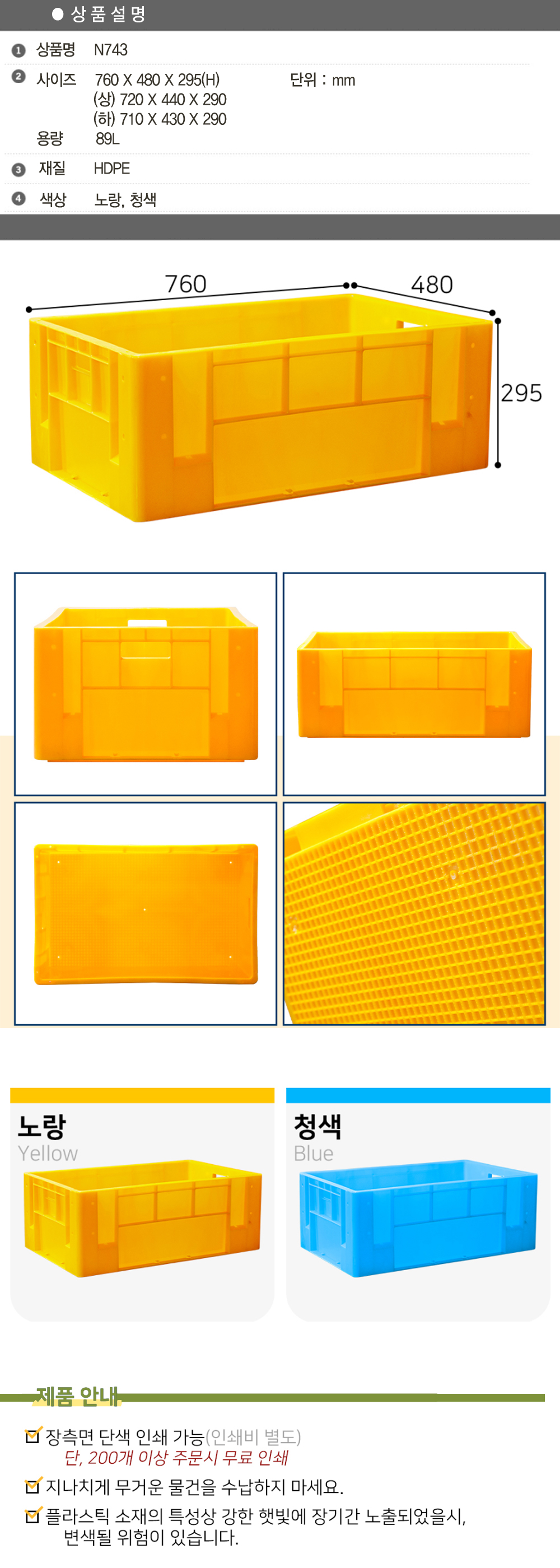 > N743 공구상자 플라스틱 보관함 운반상자 수납상자 적재 농수산물 이사 바구니