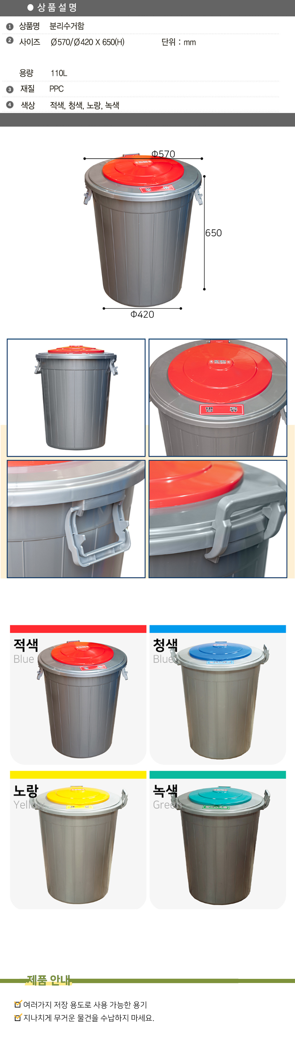 > 분리수거함 Ø570/Ø420 X 650(H) 플라스틱통 보관용기 운반용기 수납 적재 분리수거 다용도 물통 주방용품