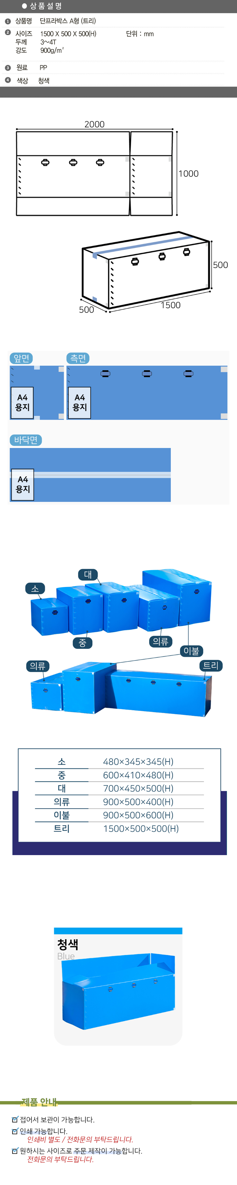 > 단프라박스 A형 (트리) 1500mm X 500mm X 500mm(H) 플라스틱박스 보관상자 운반상자 수납 적재 다용도 이사 의류상자